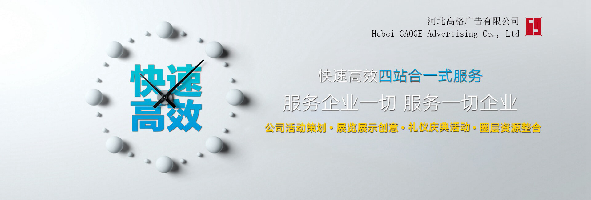 河北高格廣告有限公司是一家專(zhuān)業(yè)致力于大型文化活動(dòng)組織策劃、展覽展示工程策劃、展臺(tái)設(shè)計(jì)制作、特裝展臺(tái)搭建、會(huì)議會(huì)場(chǎng)布置、巡回展覽、路演、公關(guān)推廣執(zhí)行、會(huì)議慶典禮儀、路演設(shè)備租賃、倉(cāng)儲(chǔ)等一站式的專(zhuān)業(yè)服務(wù)公司。本公司憑借創(chuàng)新領(lǐng)先的服務(wù)理念,大型的廠房空間,現(xiàn)代化的機(jī)械設(shè)備,高素質(zhì)專(zhuān)業(yè)的服務(wù)團(tuán)隊(duì),及在該行業(yè)多年的實(shí)戰(zhàn)經(jīng)驗(yàn),為地產(chǎn)營(yíng)銷(xiāo)提供了優(yōu)秀的活動(dòng)方案、為不同行業(yè)的數(shù)千家企業(yè)提供了專(zhuān)業(yè)個(gè)性化的空間展示方案,幫助客戶(hù)實(shí)現(xiàn)了自我品牌的提升和企業(yè)利潤(rùn)的雙贏。...
